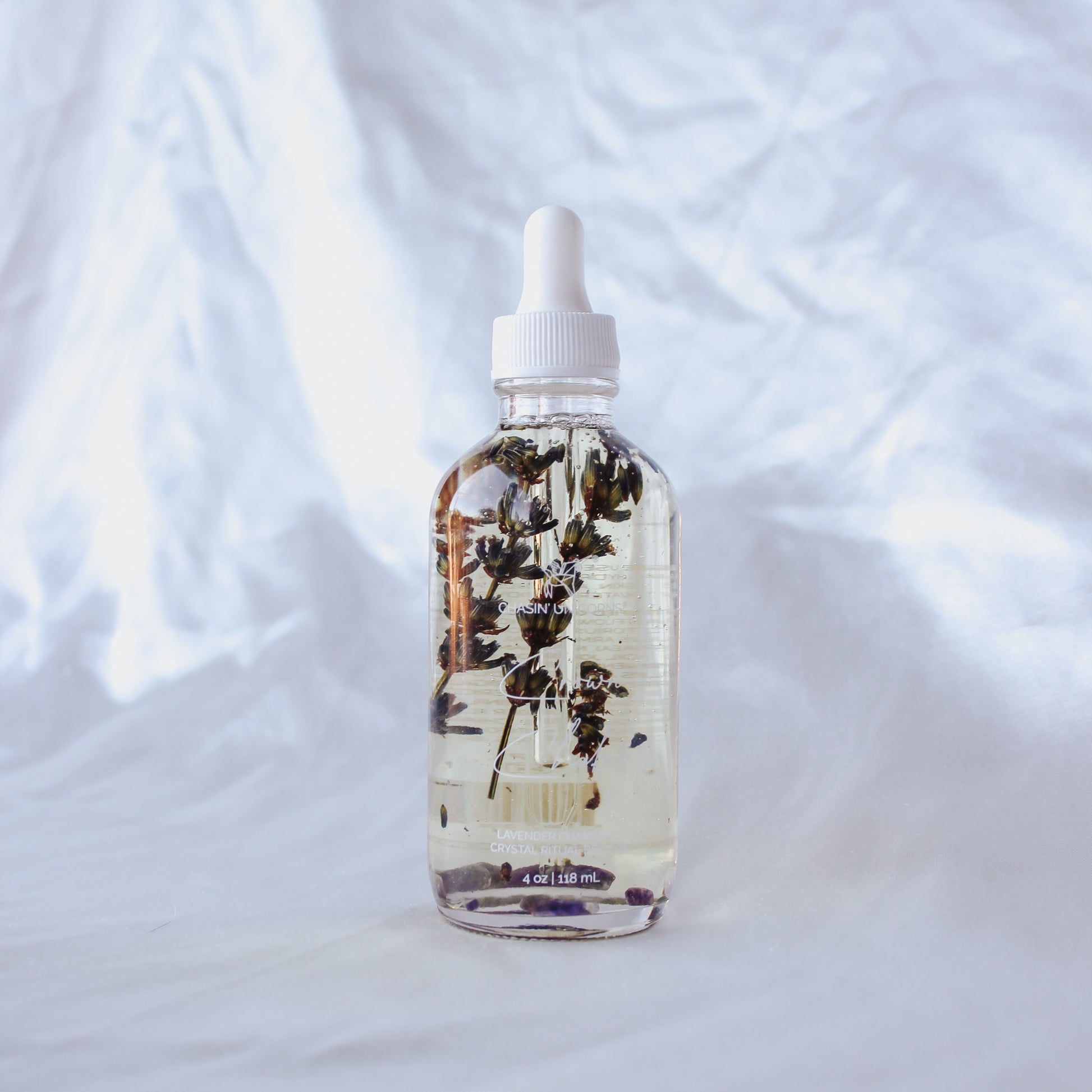 Full list of ingredients Organic Safflower Oil, Organic Apricot Kernel Oil, Organic Olive Oil, Organic Macadamia Nut Oil, Organic Jojoba Oil, Organic Sweet Almond Oil, Organic Coconut (MCT) Oil, Organic Vitamin E Oil, Organic Rosemary Antioxidant, Organic Essential Oils, Organic Dried Florals, Crystals.