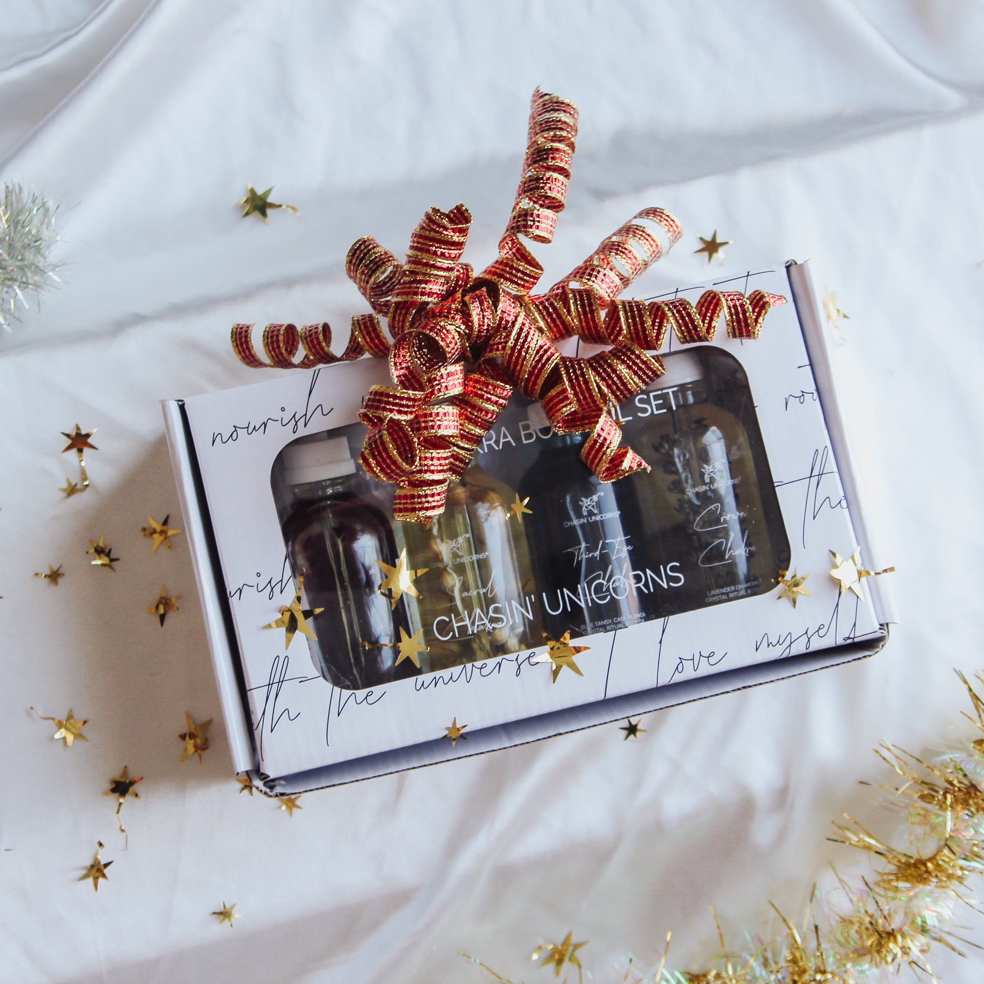 A silky smooth trio bundle for ultra-hydrating skin. Made with florals, crystals, certified organic ingredients, and crystals to help give attention to one's chakra centers in meditation or ritual.